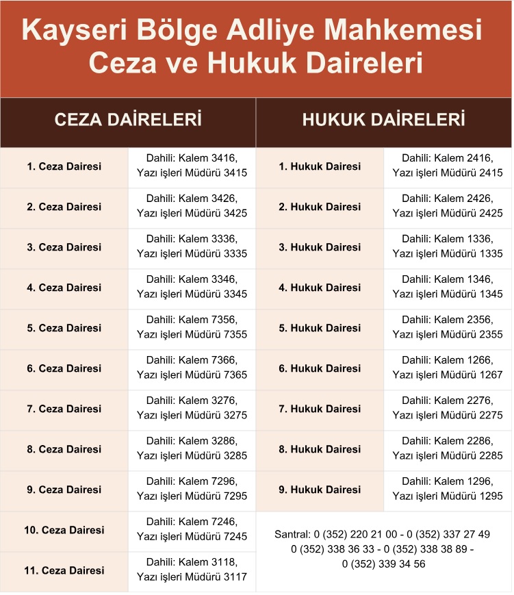 KAYSERİ BÖLGE ADLİYE MAHKEMESİ - DAİRELER